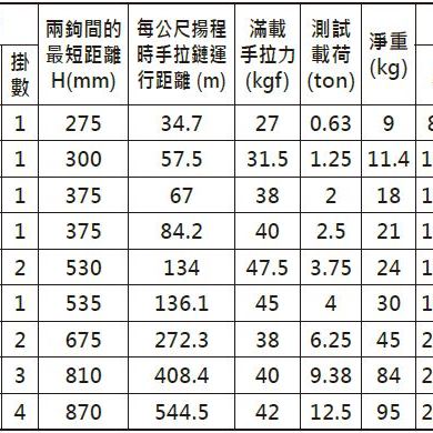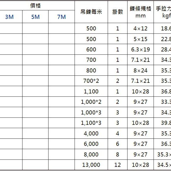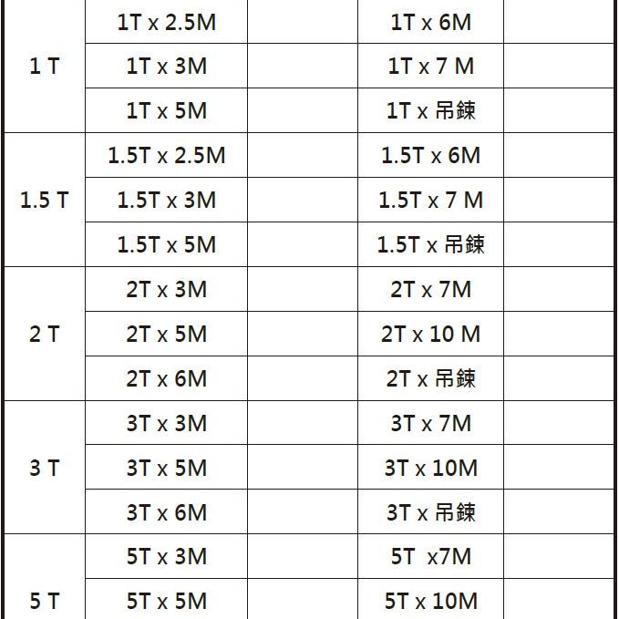 荷重鏈 (直徑 x 節距mm):5 x 15