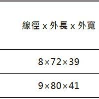線徑 x 外長 x 外寬:8 x 72 x 39