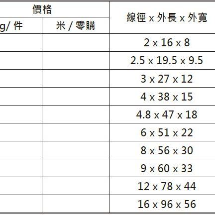 線徑 x 外長 x 外寬:2 x 16 x 8